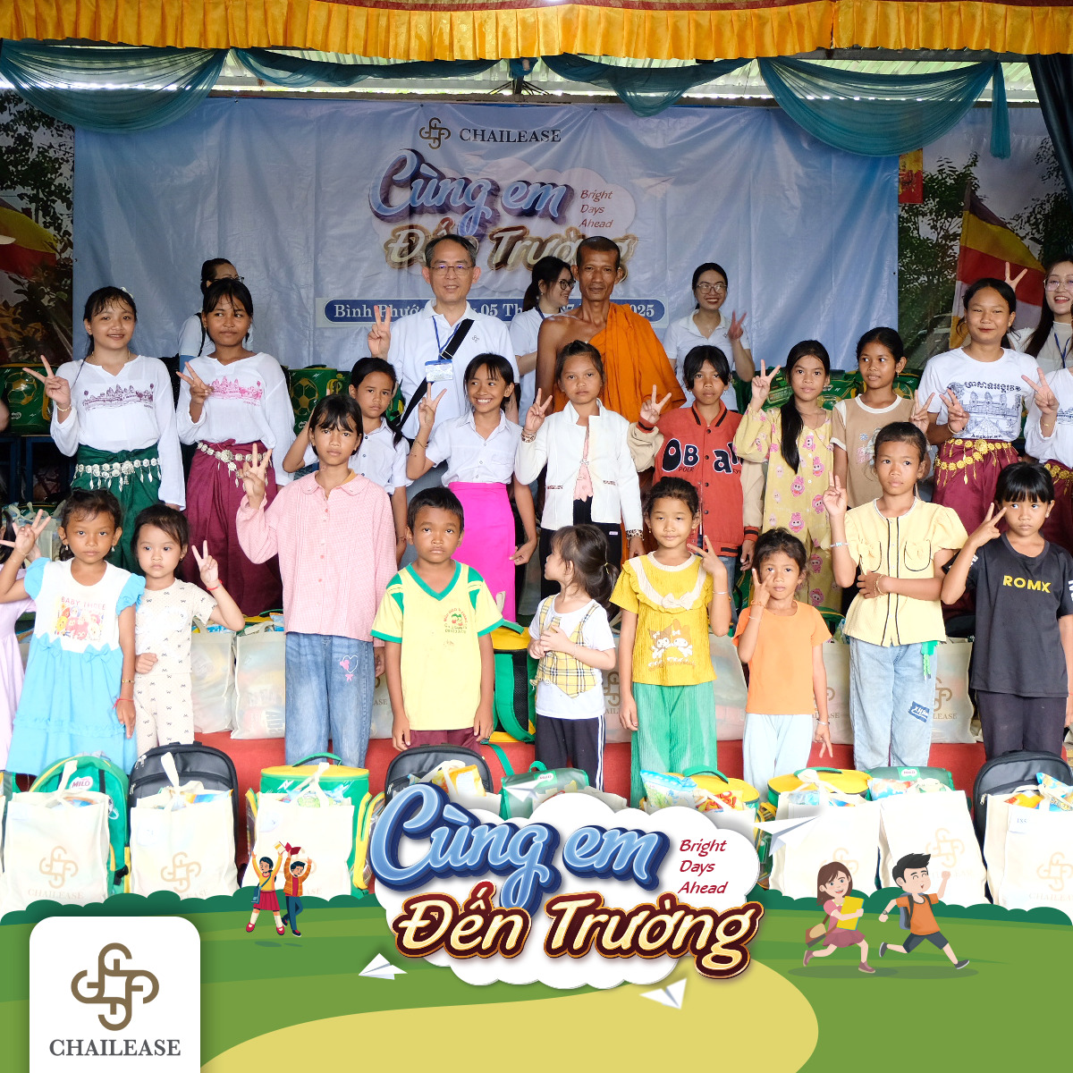 Để có một ngày hội trọn vẹn, Công ty cho thuê tài chính quốc tế Chailease đã cùng các sư thầy tại Chùa Chang Hai - toạ lạc tại ấp Chàng Hai, xã Lộc Quang, huyện Lộc Ninh, tỉnh Bình Phước – tạo nên một không gian đầy dấu ấn tuổi thơ, tiếp sức cho những giấc mơ tương lai tươi sáng. Qua đó, các sư thầy tại đây cũng đã dành những lời cảm ơn đầy chân thành đến Chailease: