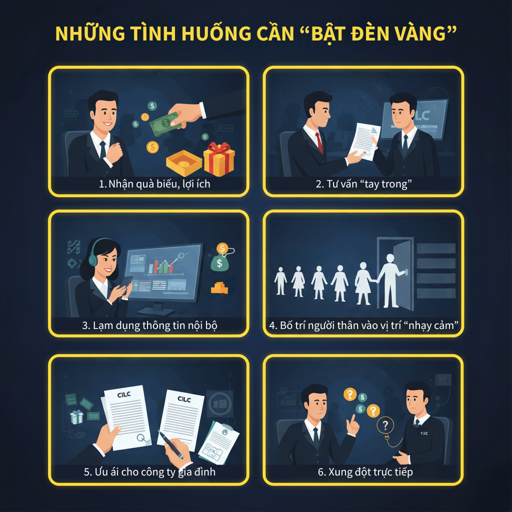 Để không ai trong chúng ta phải bối rối trong các “vùng xám”, chính sách nội bộ LEG-001 của Chailease đã vạch rõ những ranh giới cụ thể. Hãy xem đây là một chiếc “đèn báo” giúp chúng ta nhận diện và định hướng hành động một cách chính xác. Dưới đây là những tình huống điển hình bạn cần đặc biệt lưu ý: